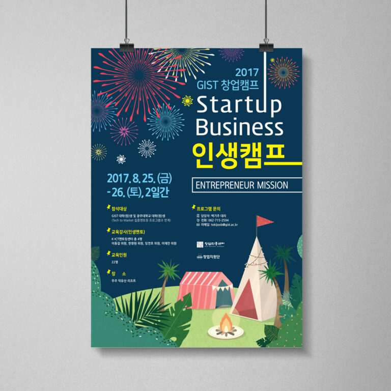 PROJECT Subject : 지스트 스타트업 나이트 Ver.4 리플렛 디자인 Client : GIST Period : Jan – Mar 2019 Tools : Photoshop, Illustrator BRAND COLOR CONCEPT 광주과학기술원 창업진흥센터에서 창업문화활성화를 위한 목적으로 제작된 리플렛으로, 스타트업 나이트라는 주제에 맞게 색상을 배치하였습니다. 어두운 배경에는 노란색으로 배색 효과를 주어 제목을 강조하는 효과를 주었습니다. 흰색 배경에는 노란 별 표시를 통해 강조하는…