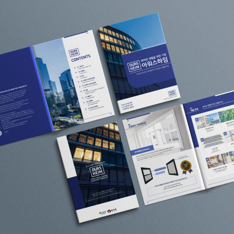 PROJECT Subject : 아워스하임 브로슈어 디자인 Client : 아워스하임 Period : Jun – Aug 2022 Tools : Photoshop, Illustrator BRAND COLOR CONCEPT 미세먼지와 환기 솔루션을 제공하는 고객사 브랜드를 소개하는 브로슈어입니다. 전체적으로 블루계열의 색상을 사용하여 도시적이지만 친환경적이고 맑고 시원한 느낌을 주도록 하였습니다. 컨텐츠 흐름도를 디자인하여 이해도를 높이고, 소개내용과 어울리는 일러스트와 인포그래픽을 활용하였습니다.