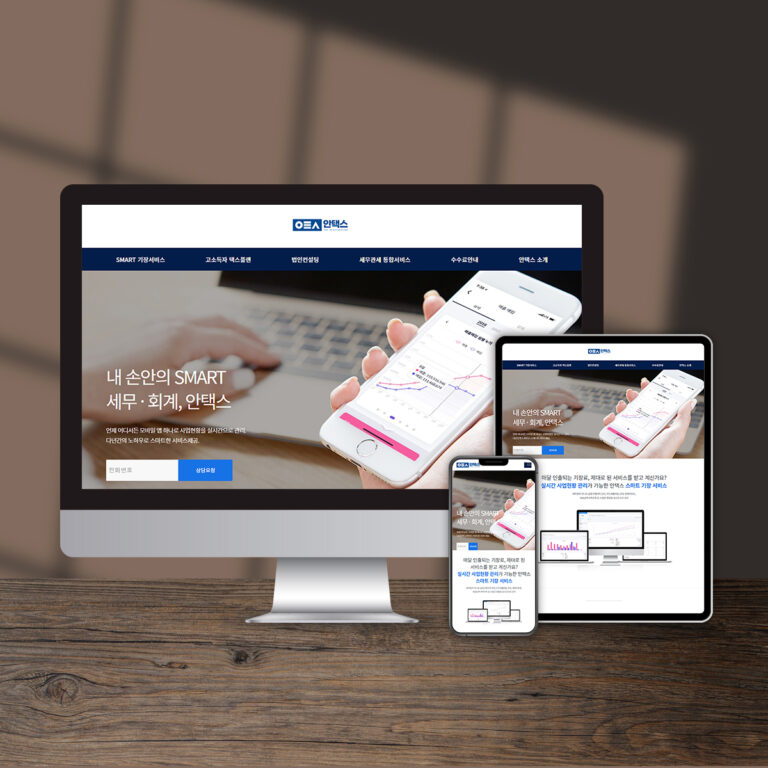 PROJECT Subject : 안택스 반응형 웹사이트 구축 Client : 안택스 Period : March – June 2016 Language : HTML, CSS, JavaScript, PHP CMS : Wordpress BRAND COLOR CONCEPT 메인배너에 풀이미지를 넣어 무게감을 주는 동시에 세무·회계 서비스를 제공하는 고객사의 특성에 맞는 안정적인 레이아웃과 메인컬러인 네이비와 블루를 사용하여 신뢰감을 주도록 하였습니다.
