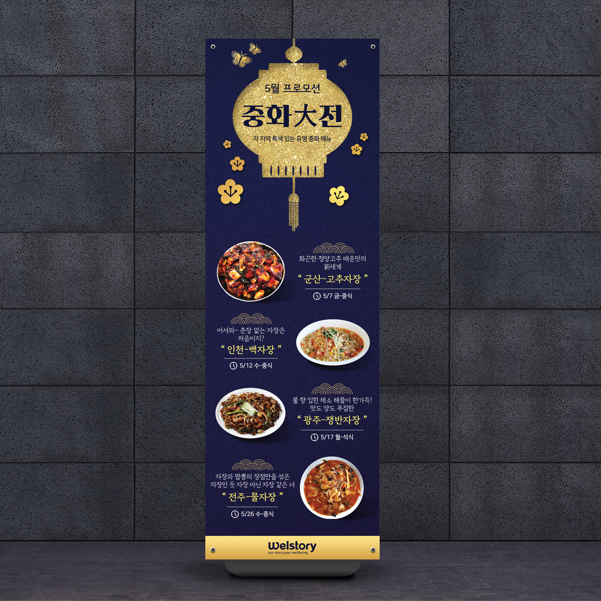 Als einer der Samsung Welstory Das Banner enthielt berühmte chinesische Menüs, die für jede Region einzigartig sind, und Dekorationen und Illustrationen, die zum Thema des chinesischen Menüs passten, wurden verwendet, um ein luxuriöses und klares Bannerdesign zu schaffen.