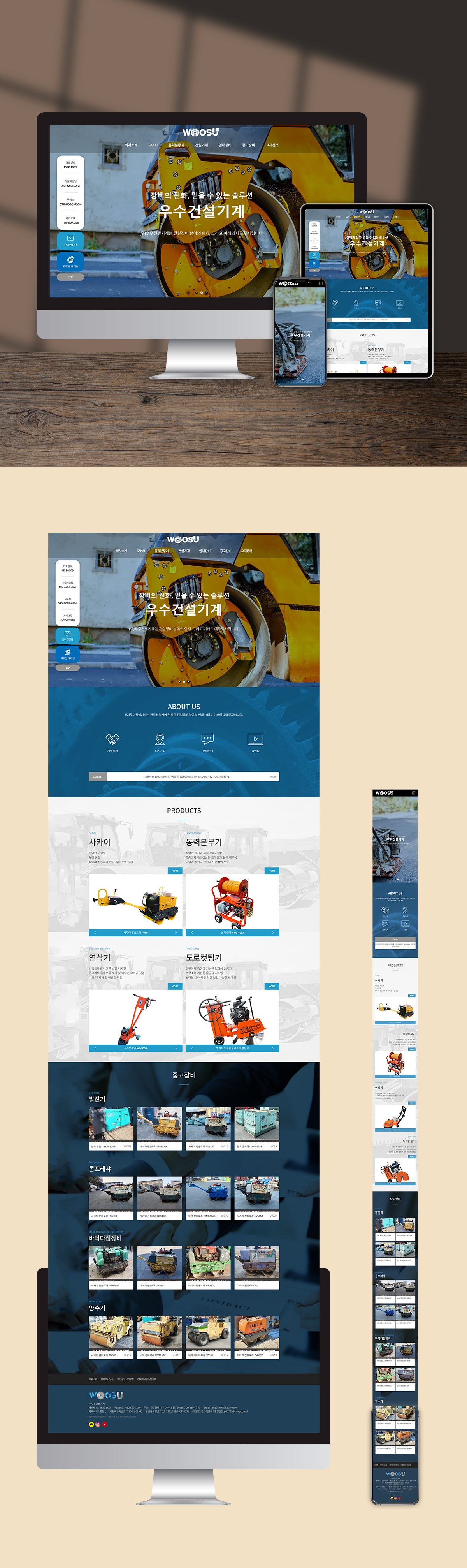 Está diseñado con un diseño limpio que es fácil de ver de un vistazo, y la marca se expresa mediante el uso de un color de base azul que puede infundir una sensación de confianza en los clientes. Está diseñado para exponer los productos de la máquina del cliente en la página principal para inducir a los usuarios que visitan el sitio web a acceder a los productos de forma natural. Las subpáginas también están organizadas de manera uniforme haciendo un buen uso de las infografías.