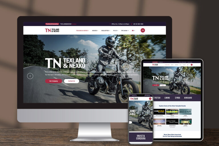 PROJECT Subject : 텍스랜드앤넥스코 반응형 웹사이트 구축 Client : Texland&Nexko Co.,Ltd Period : May – Sep 2021 Language : HTML, CSS, JavaScript, PHP CMS : Wordpress BRAND COLOR CONCEPT 안정감 있는 레이아웃으로 디자인하여 핵심 콘텐츠를 효과적으로 전달할 수 있도록 배치하고 로고 컬러로 포인트를 주어 가독성을 높이고 정돈된 느낌을 주었습니다. 메인 슬라이드 하단의 이미지를 클릭시 팝업을…
