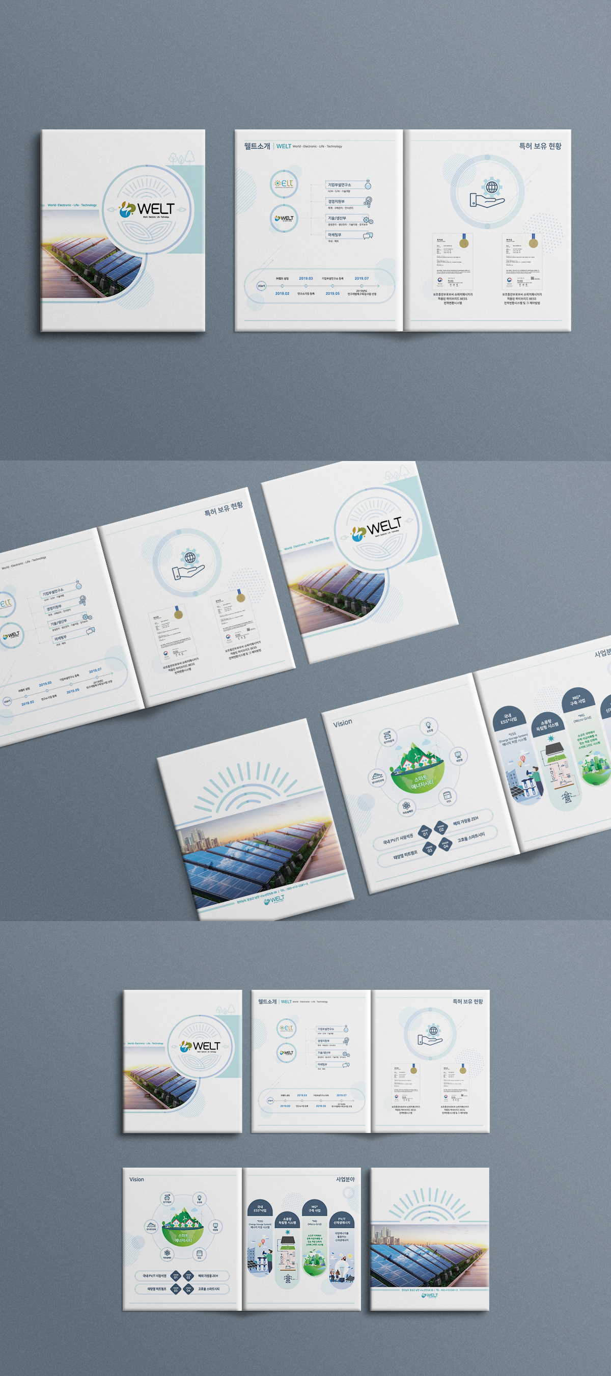 신재생에너지솔루션을 제공하는 기업소개 브로슈어를 제작하였습니다. 원형의 이미지와 둥근 모양의 아이콘을 사용하여 순환하는 재생에너지를 간접적으로 표현하고 있습니다. 강렬하지 않은 파스텔 톤 색상을 사용하여 전반적으로 산뜻하면서도 밝은 분위기를 주도록 구성하였습니다.