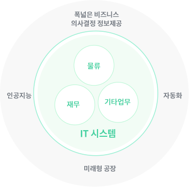 - 재무 및 물류의 별도 시스템 관리로 인한 업무효율 및 신뢰성 저하